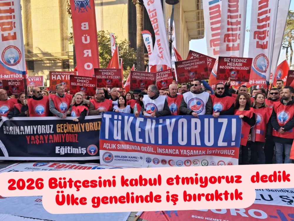 Kamu emekçisinin umudu olan Birleşik Kamu-İş olarak altını çiziyoruz: Bu iş bırakma eylemimiz bir uyarıdır. Kamu emekçisi, gasp edilen hakları teslim edilmedikçe üretimden gelen gücünü kullanmayı da demokratik hakları çerçevesinde mücadele etmeyi de sürdürecektir.